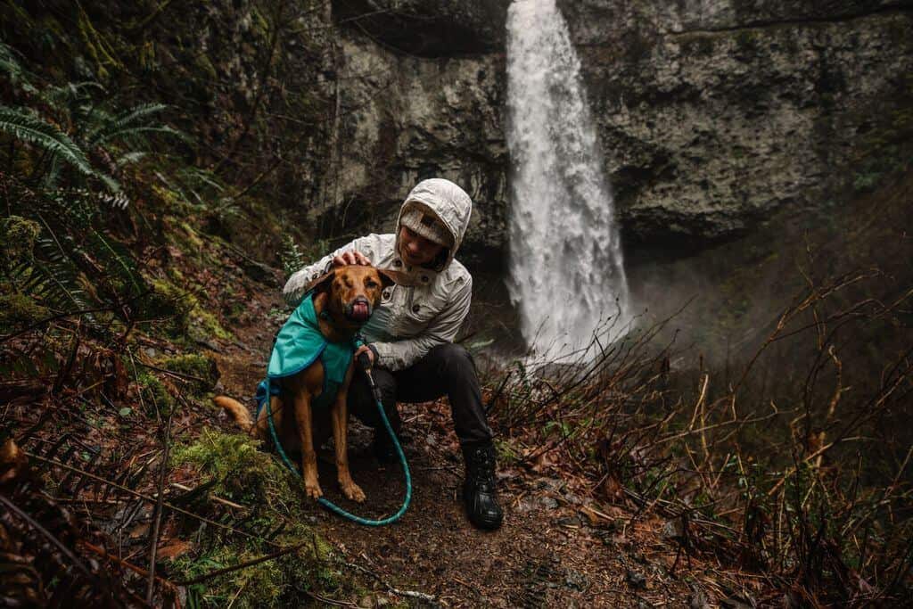 The popular Ruffwear Sun Shower dog rain jacket is back and better designed to satisfy your pet’s needs when outside during wet rainy weather. Thanks to its waterproof shell, updated materials, extra coverage and the leash portal when wearing a harness, this Ruffwear dog rain jacket is just the perfect jacket to keep dogs dry and comfortable while exploring.